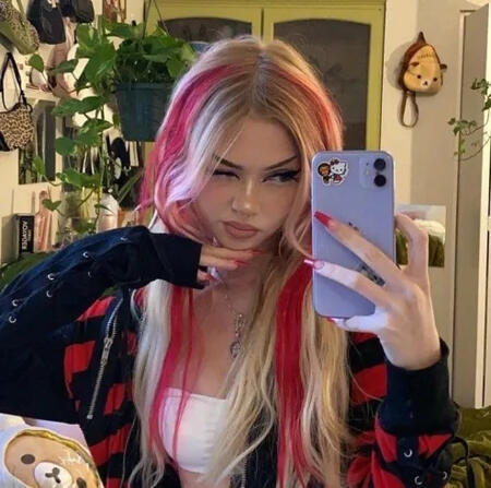 Eye Color; Hazel - Hair Color; Blonde with hot pink streaks - Skin Color; Pale but also tan